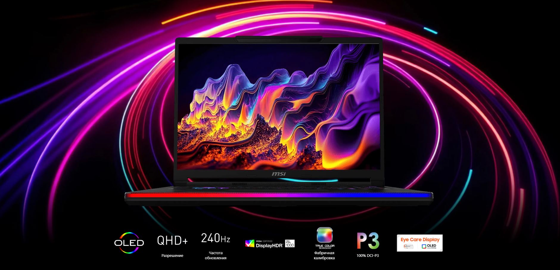 | Экран | 16" QHD+(2560x1600), частота обновления 240Гц, OLED, 100% DCI-P3, сертификация VESA DisplayHDR™ True Black 1000, дисплей SGS Eye Care |