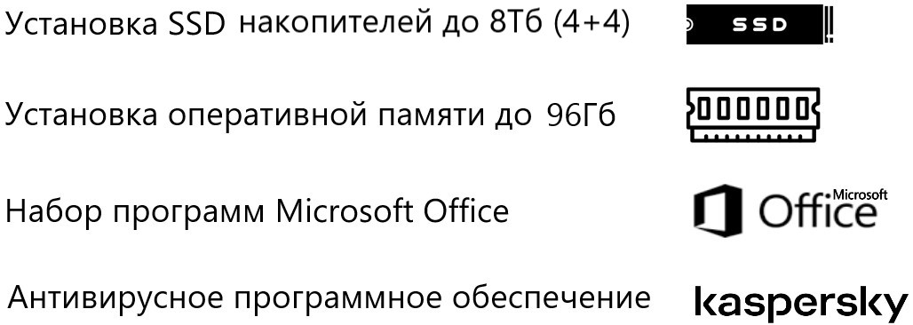 | Хранилище | 2ТБ*1 NVMe SSD PCIe Gen4 1x M.2 SSD слот (NVMe PCIe Gen4), 1x M.2 SSD слот (NVMe PCIe Gen5) |